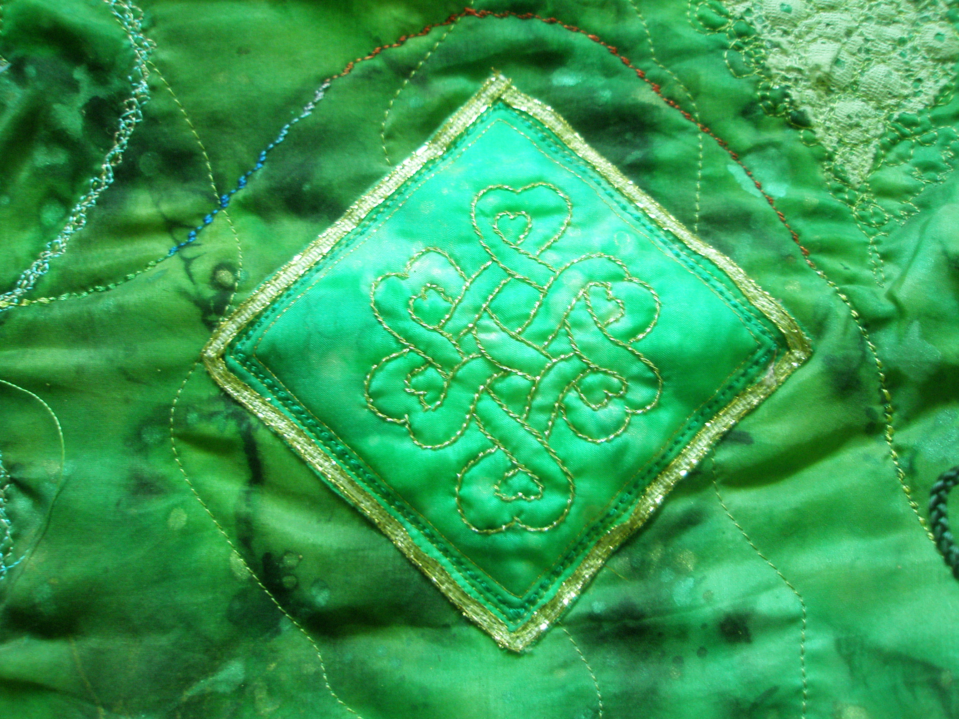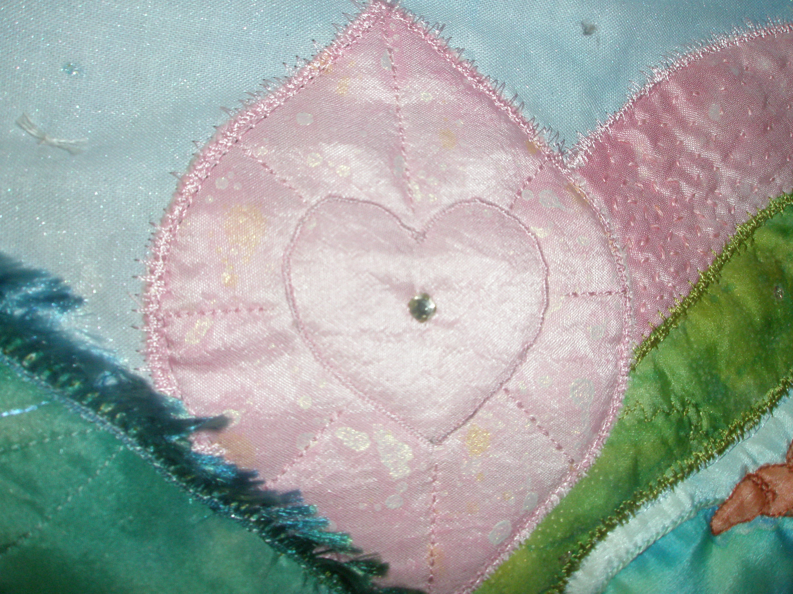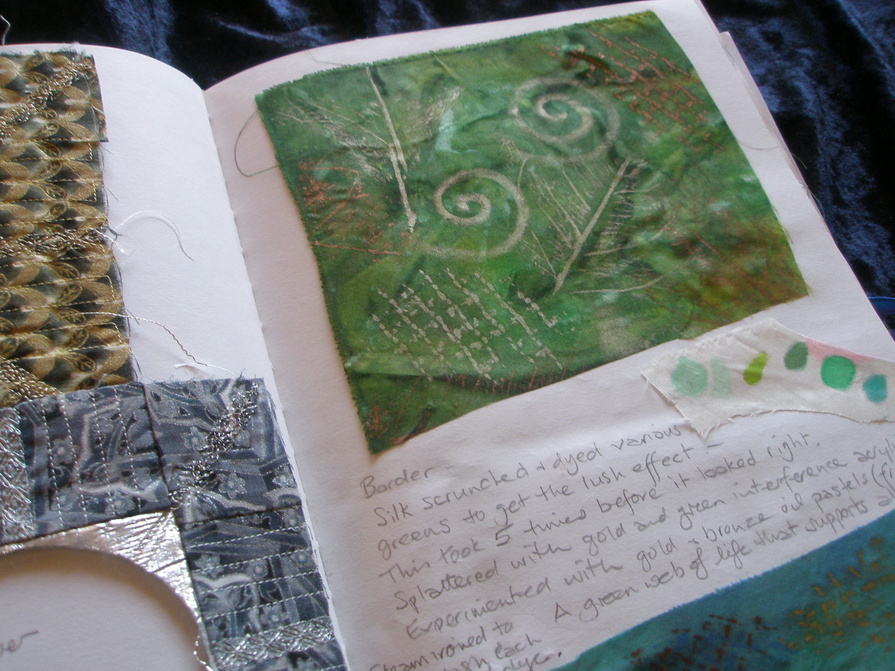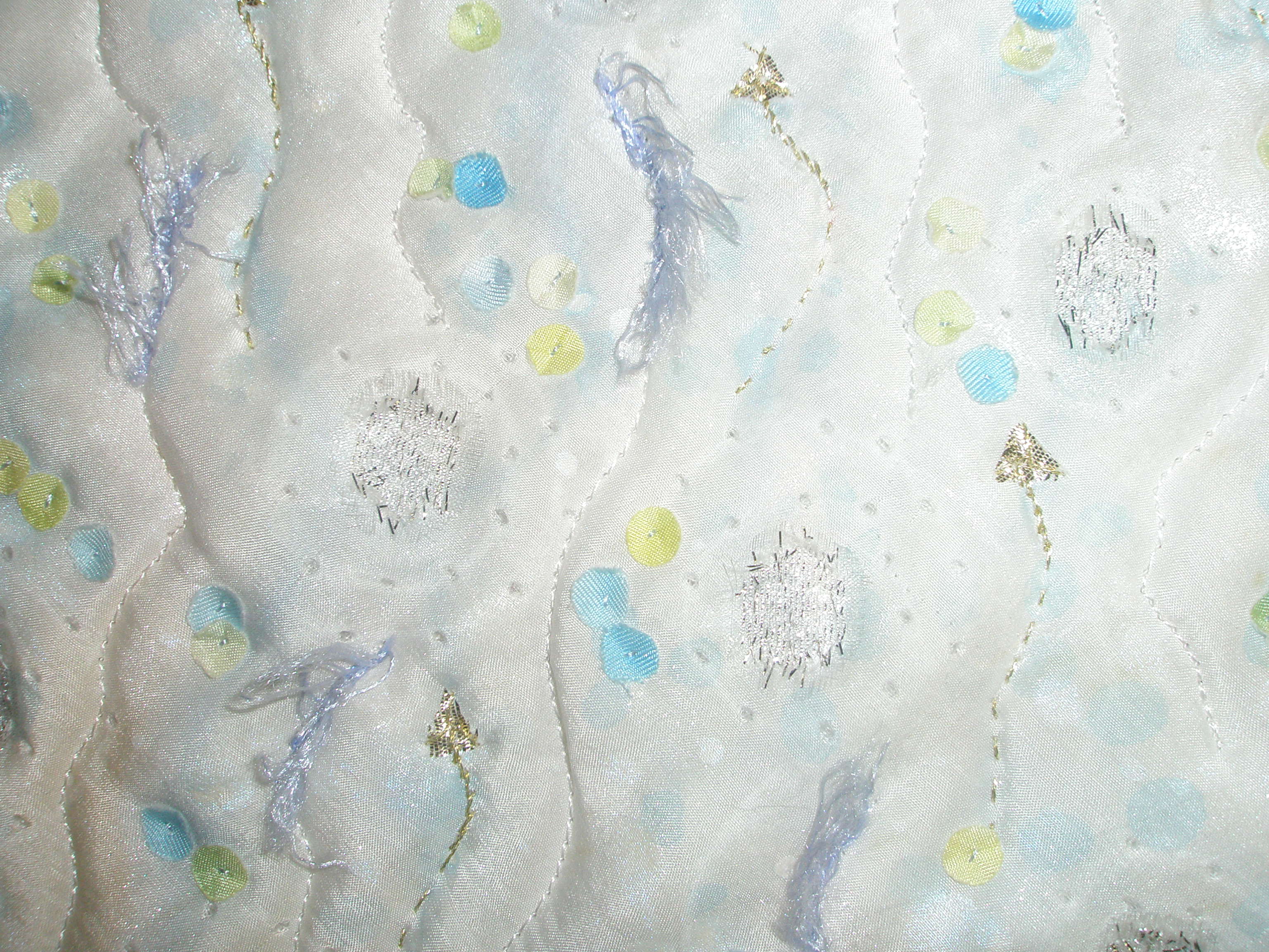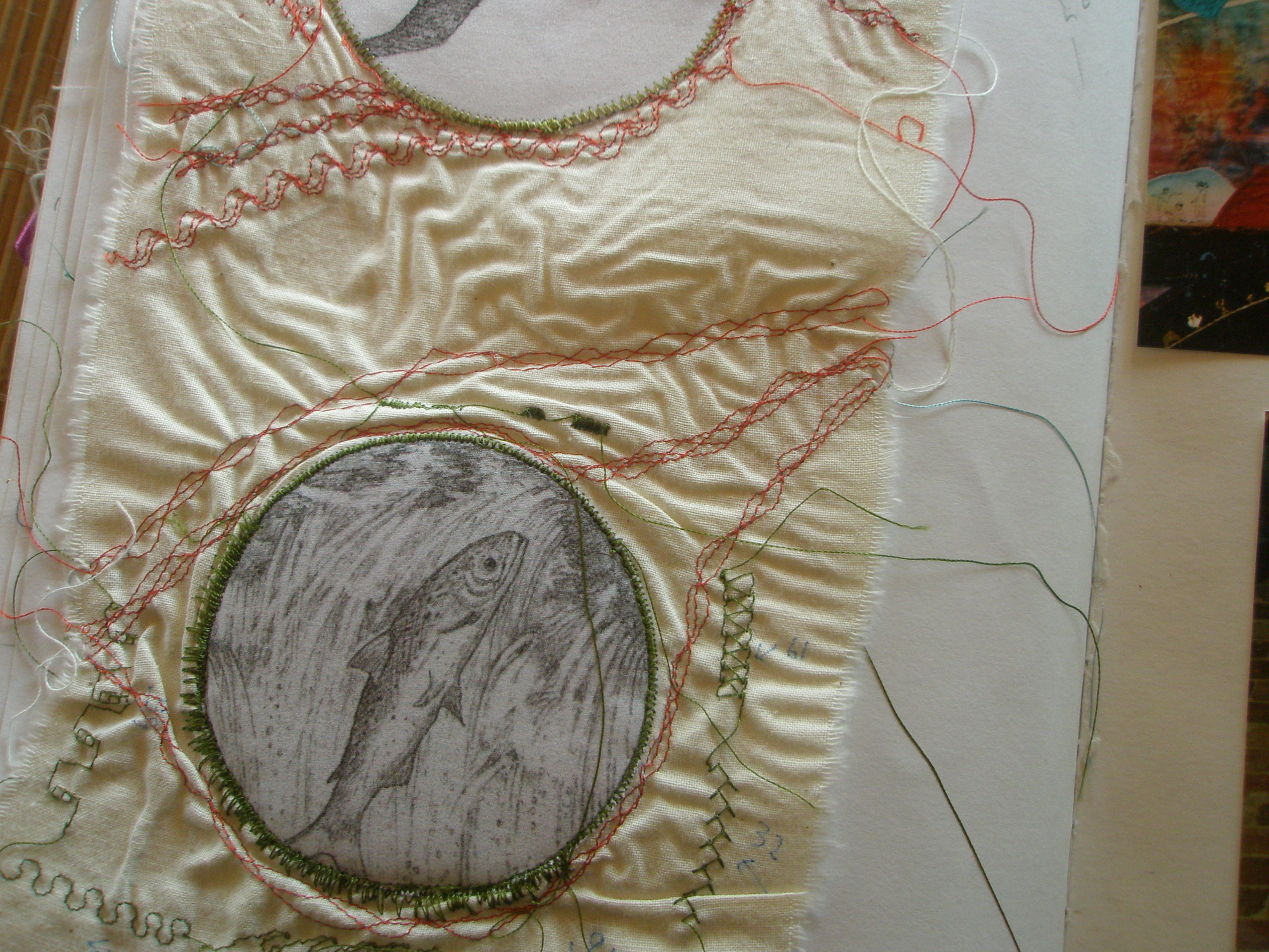 I eventually chose silk painting for the wallhanging. I loved its sensitivity and fluidity of colour. I also used a combination of different textiles to help me capture the ‘textures’ of nature.