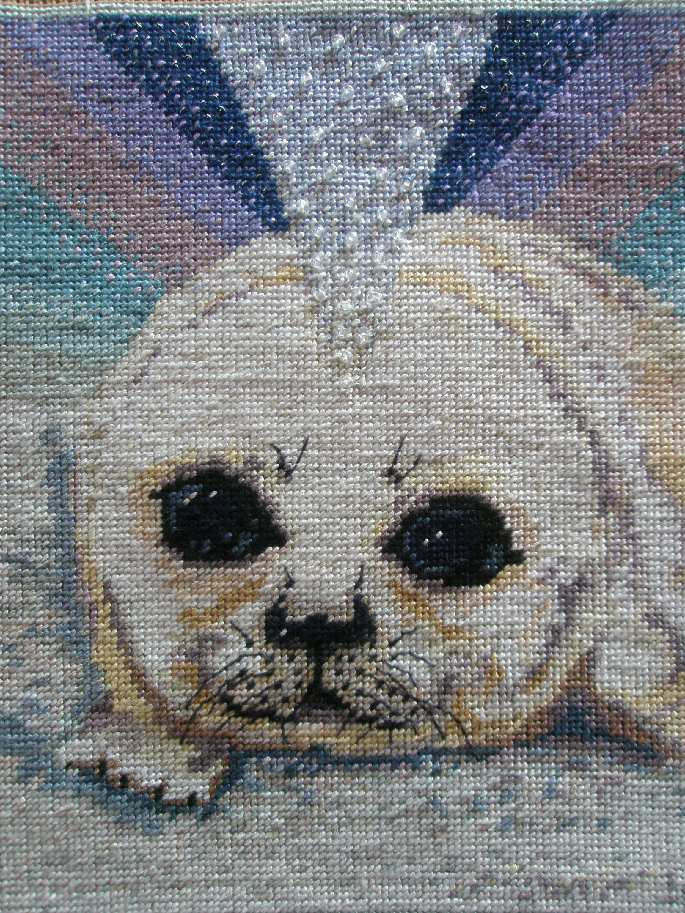 So I painted 5 images with acrylic paint on canvas and then stitched in ‘petit-point’ working the colours in embroidery thread as I would a watercolour painting… working from dark to light…