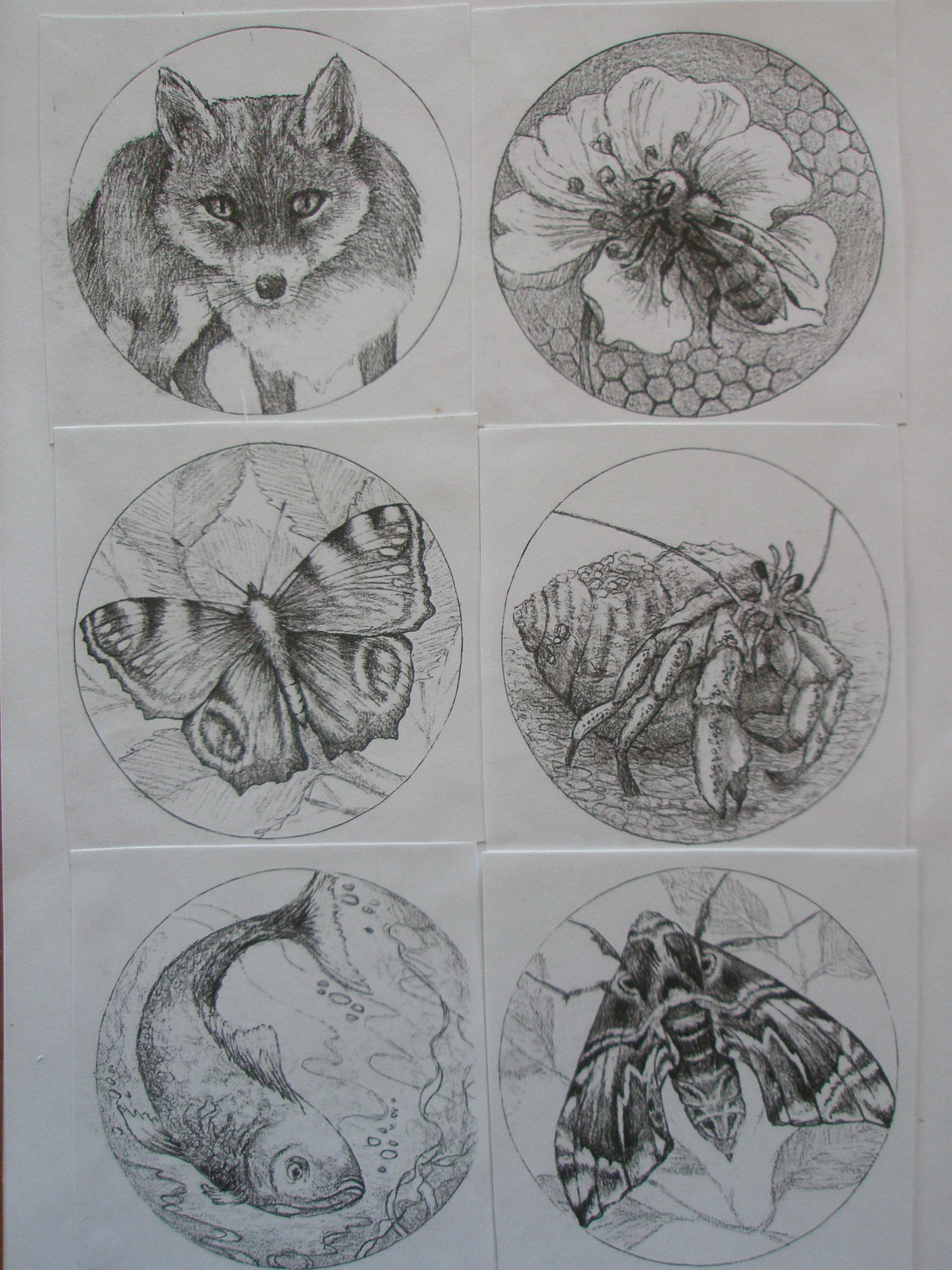 So I changed tack and started with the pencil animal drawings… on A4 paper …. 72 in all